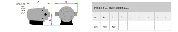 Pérdida de carga máxima en succión: 4 m.c.a.