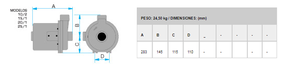 Pérdida de carga máxima en succión: 4 m.c.a.