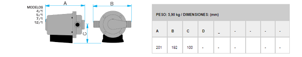 Pérdida de carga máxima en succión: 4 m.c.a.