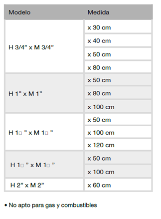 Nuestros flexibles ofrecen la ventaja que a igual diámetro de entrada y salida que otros en plaza,