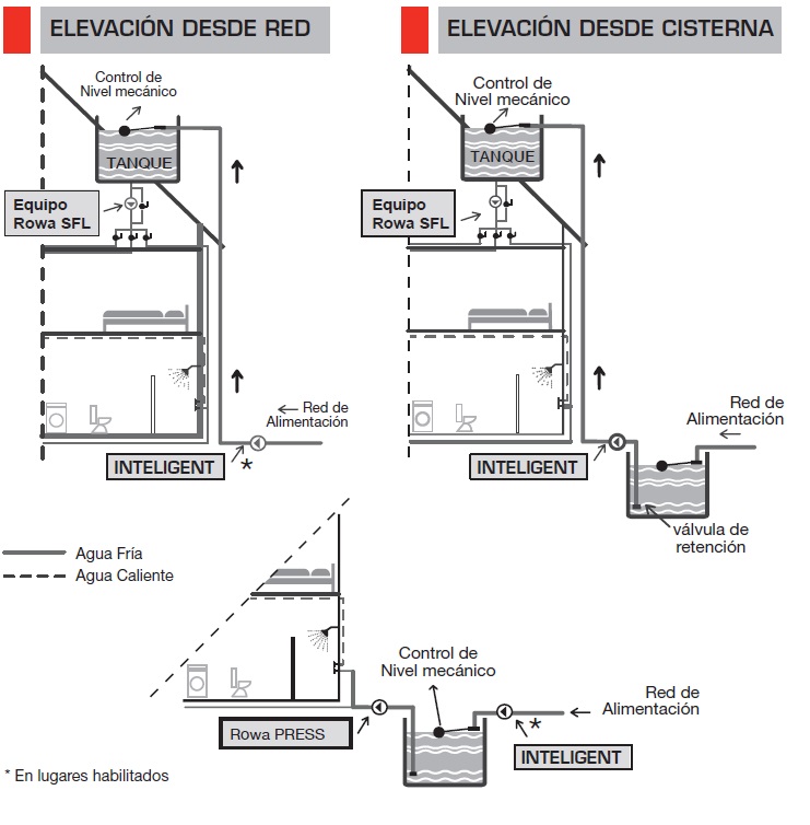 No necesita flotante eléctrico en el tanque de destino (elevado o cisterna).