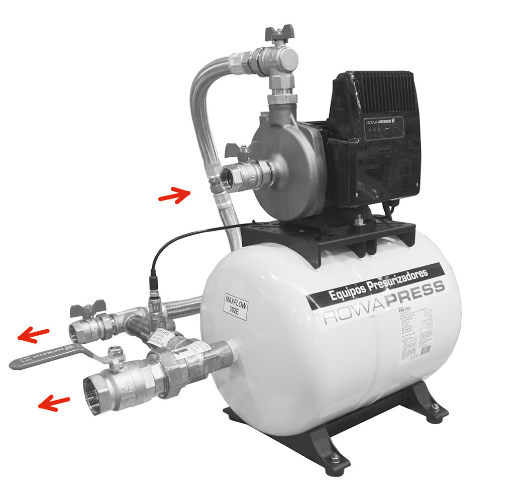 Un sólo equipo para la instalación sanitaria general y alimentación de válvulas de inodoro.