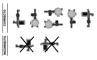 El presurizador deberá ser instalado obligatoriamente de modo que el eje de la electrobomba permanezca en posición horizontal, de acuerdo a las siguientes figuras. El no cumplimiento de esta norma implicará el desgaste irregular del equipo y la consecuente pérdida de la garantía.